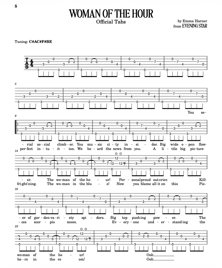 Subscribe to Emma’s substack for free to access tabs, get updates, and read articles on songwriting and all things guitar.